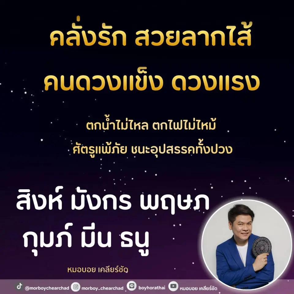 หมอบอย เคลียร์ชัด เผย ดวง 6 ราศี ดวงแรงมีพลัง คนคิดร้ายจะแพ้พ่าย อุปสรรคจะแพ้ภัย ชนะภยันตรายทั้งปวง โดยได้โพสต์ผ่านแฟนเพจ หมอบอย เคลียร์ชัด
