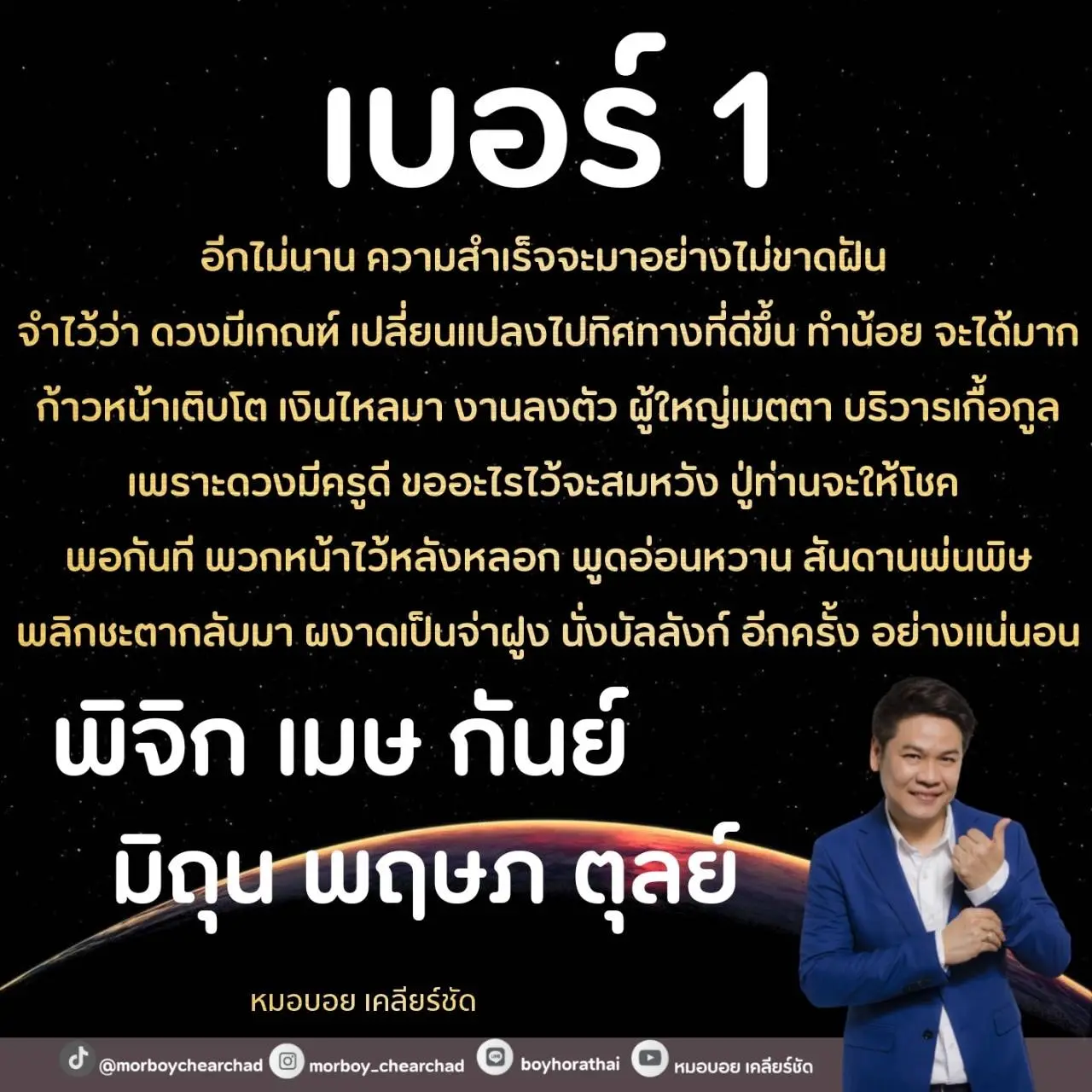 หมอบอย เคลียร์ชัด เผย ดวง 6 ราศี โนหนึ่ง ความก้าวหน้า ความสำเร็จ จะมาแบบไม่คาดฝัน โดยได้โพสต์ผ่านแฟนเพจ หมอบอย เคลียร์ชัด