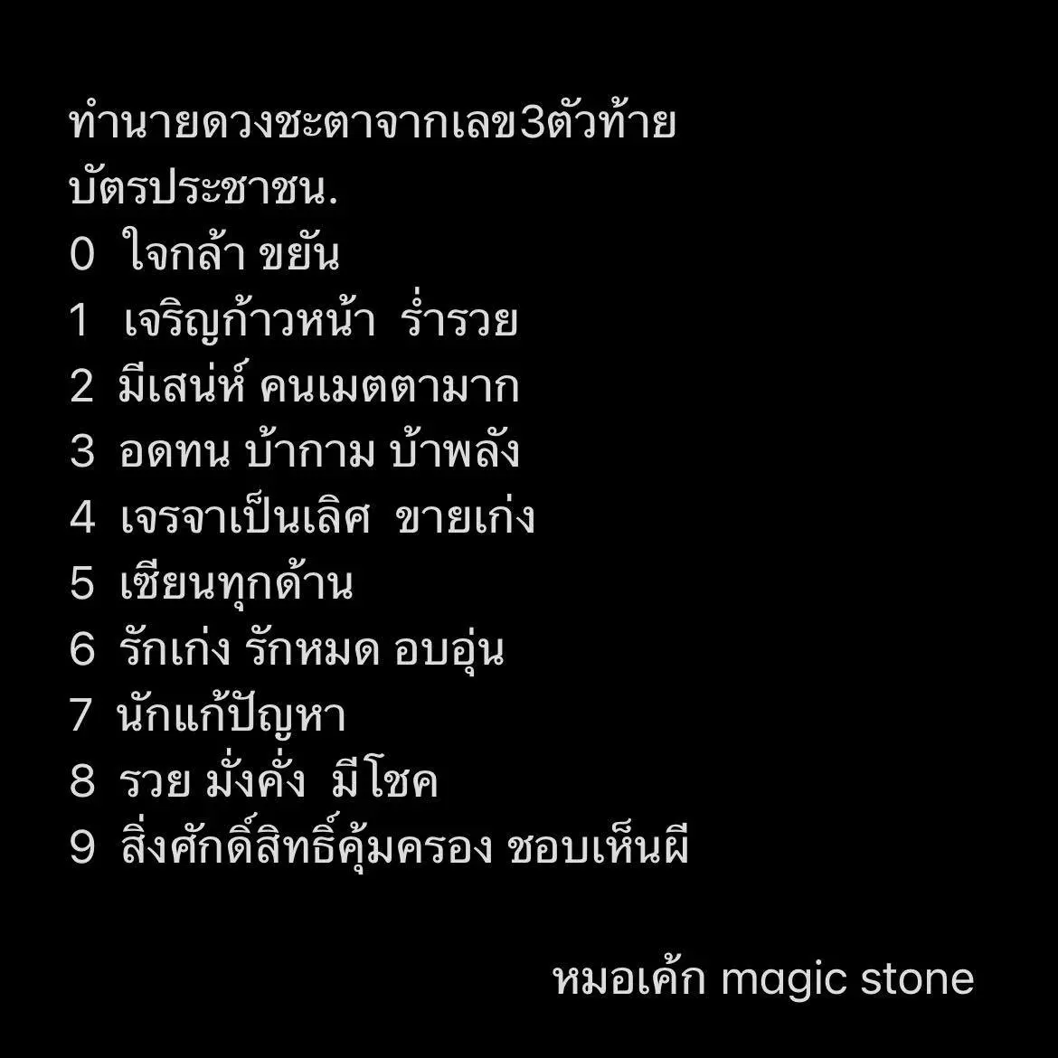 หมอเค้ก Magic stone เผย ทำนายดวงชะตา จาก เลขท้ายบัตรประชาชน ด้วยเลข 3 ตัวท้าย โดยได้โพสต์ผ่านแฟนเพจ หมอเค้ก Magic stone