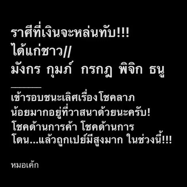หมอเค้ก Magic stone เผย ดวง 5 ราศี เงินหล่นทับ การงานการค้าขายมีโชค มีเกณฑ์โดน…แล้วจะถูกเปย์ โดยได้โพสต์ผ่านแฟนเพจ หมอเค้ก Magic stone