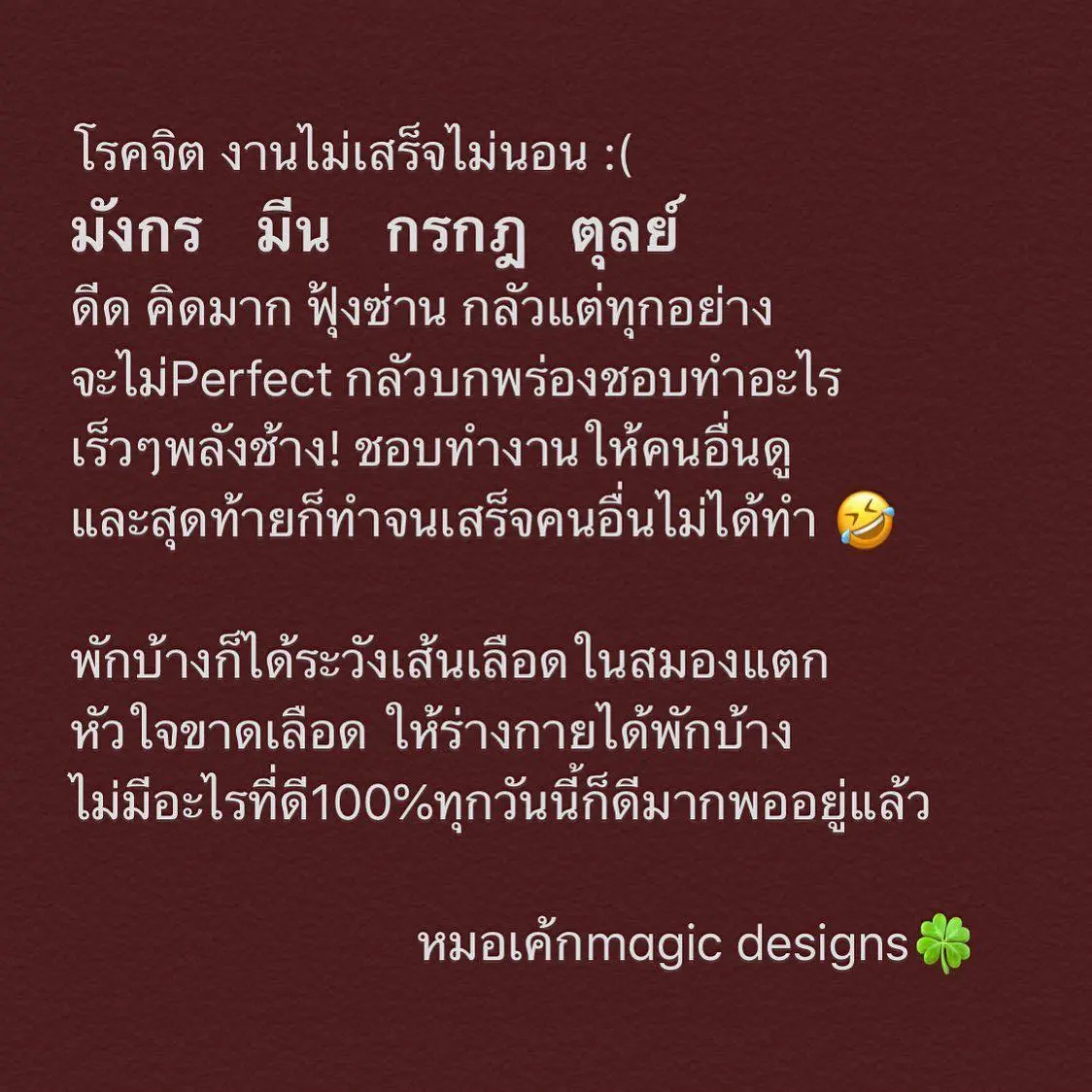 หมอเค้ก Magic stone เผย ดวง 4 ราศี ไม่เสร็จไม่นอน ร่างกายไม่ไหว แต่ใจเกินร้อย งานไม่เสร็จไม่นอน โดยได้โพสต์ผ่านแฟนเพจ หมอเค้ก Magic stone