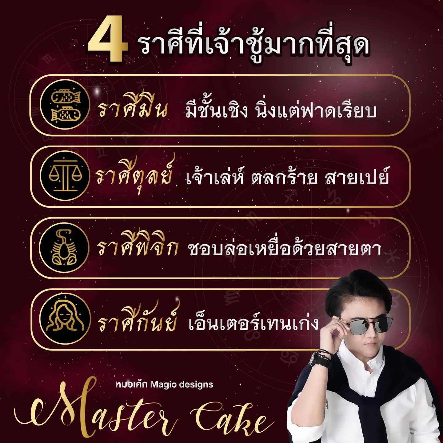 หมอเค้ก Magic stone เผย ดวง 4 ราศี เจ้าชู้มากที่สุด นักรักตัวฉกาจ ชอบชวนไปดูเขื่อน ชอบชวนไปดูแมว โดยได้โพสต์ผ่านแฟนเพจ หมอเค้ก Magic stone