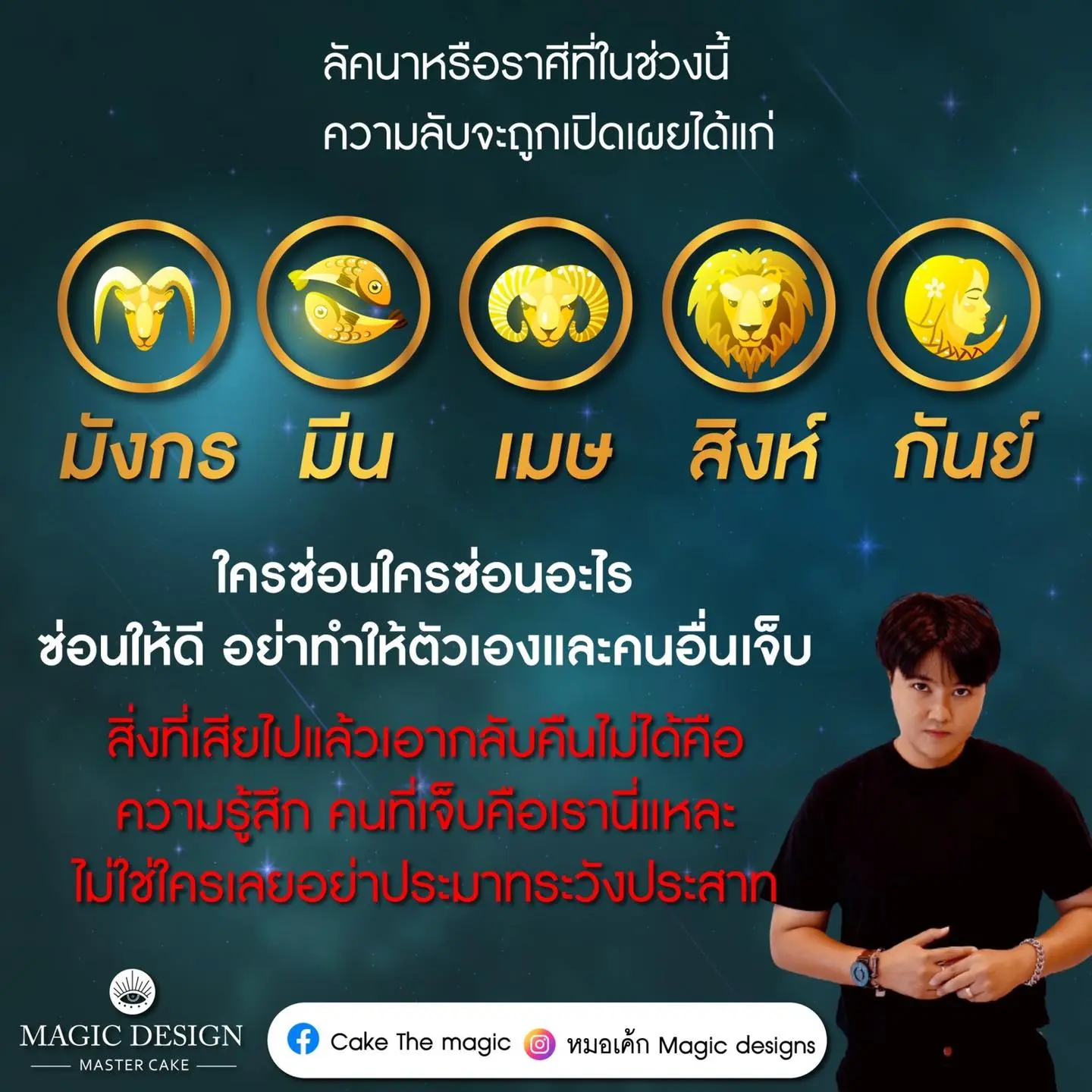 หมอเค้ก Magic stone เผย ดวง 5 ลัคนาราศี ในช่วงนี้ควรระวังโป๊ะแตก!!! ความลับจะถูกเปิดเผย โดยได้โพสต์ผ่านแฟนเพจ หมอเค้ก Magic stone
