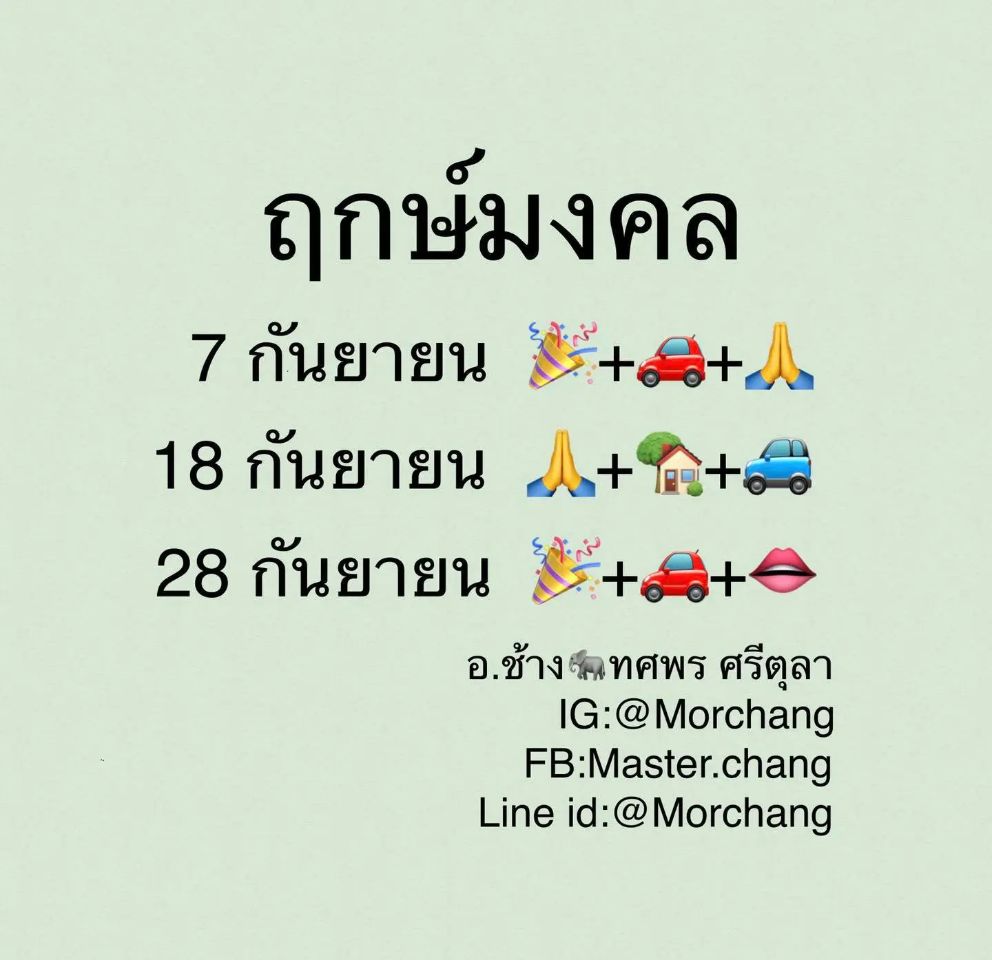 7 กันยายน เหมาะสำหรับ ฤกษ์งานมงคล ฤกษ์ออกรถคันใหม่ ฤกษ์ทำบุญ