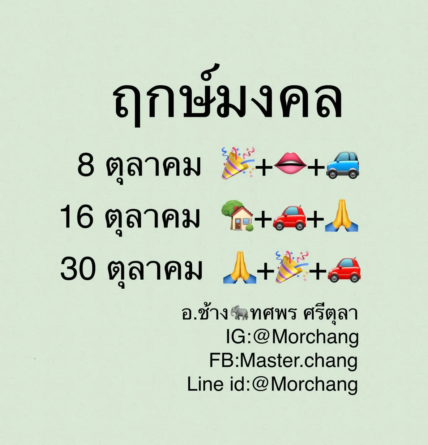 หมอช้าง หรือ นาย ทศพร ศรีตุลา หมอดูนักพยากรณ์ชื่อดังของประเทศไทย ได้โพสต์ภาพพร้อมข้อความผ่านทางเพจเฟซบุ๊ก หมอช้าง ทศพร ศรีตุลา ว่า ฤกษ์มงคลเดือนตุลาคม