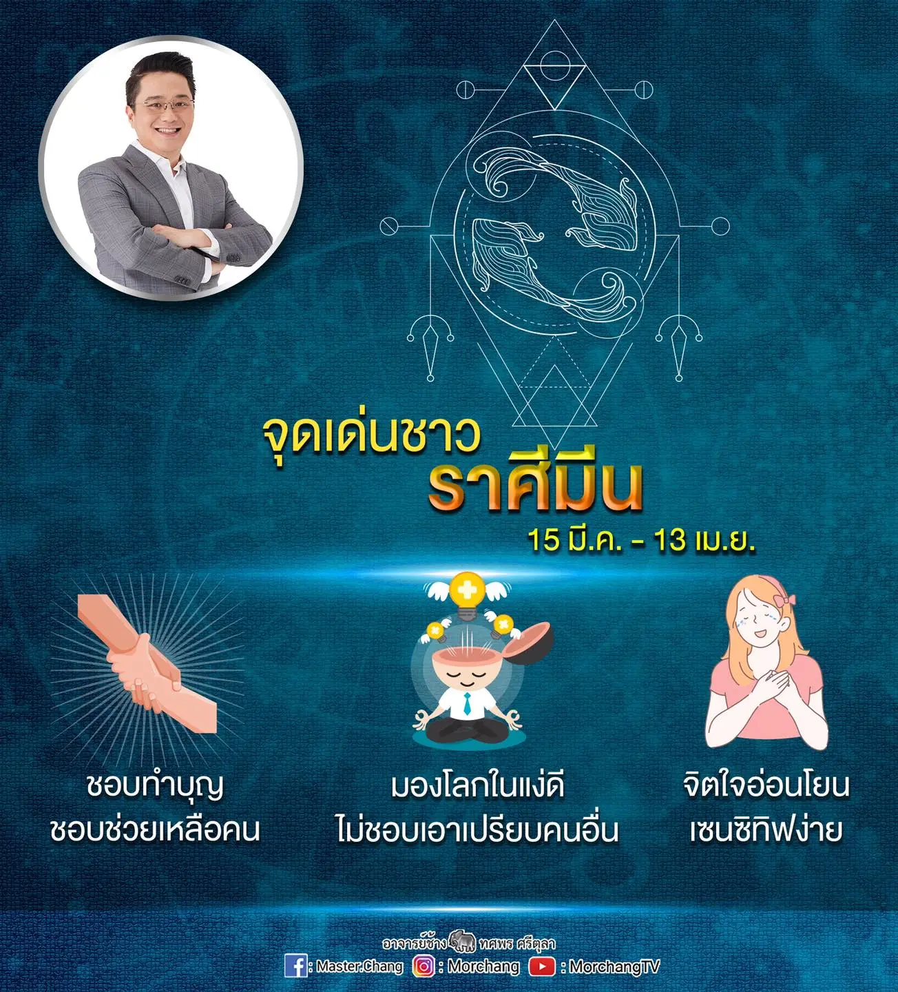 หมอช้าง หรือ นาย ทศพร ศรีตุลา หมอดูนักพยากรณ์ชื่อดังของประเทศไทย ได้โพสต์ภาพพร้อมข้อความผ่านทางเพจเฟซบุ๊ก หมอช้าง ทศพร ศรีตุลา ว่า ชาวราศีมีน(15มีนา-13เมษา)