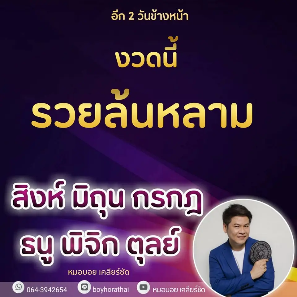 หมอบอย เคลียร์ชัด นักพยากรณ์ดวงชะตาชื่อดัง เผย ดวง 6 ราศี มีเกณฑ์ถูกหวย รวยจากโชคลาภ โดยได้โพสต์ผ่านแฟนแพจ หมอบอย เคลียร์ชัด