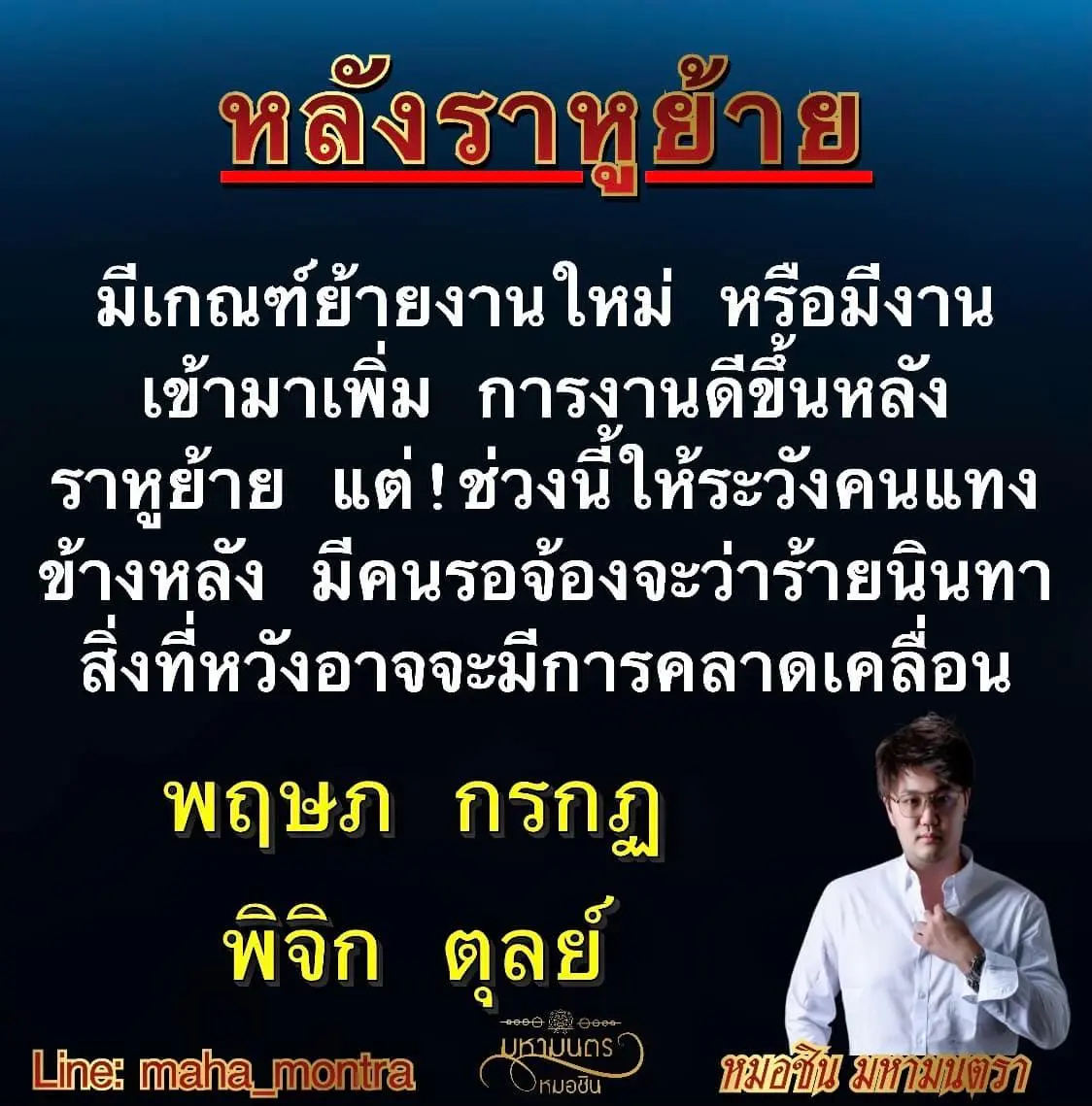 หมอชิน มหามนตรา เผย ดวง 4 ราศี หลังราหูย้าย มีเกณฑ์ได้งานใหม่หรือย้ายที่ทำงาน แต่ระวังคนแทงข้างหลัง โดยได้โพสต์ผ่านแฟนเพจ หมอชิน มหามนตรา