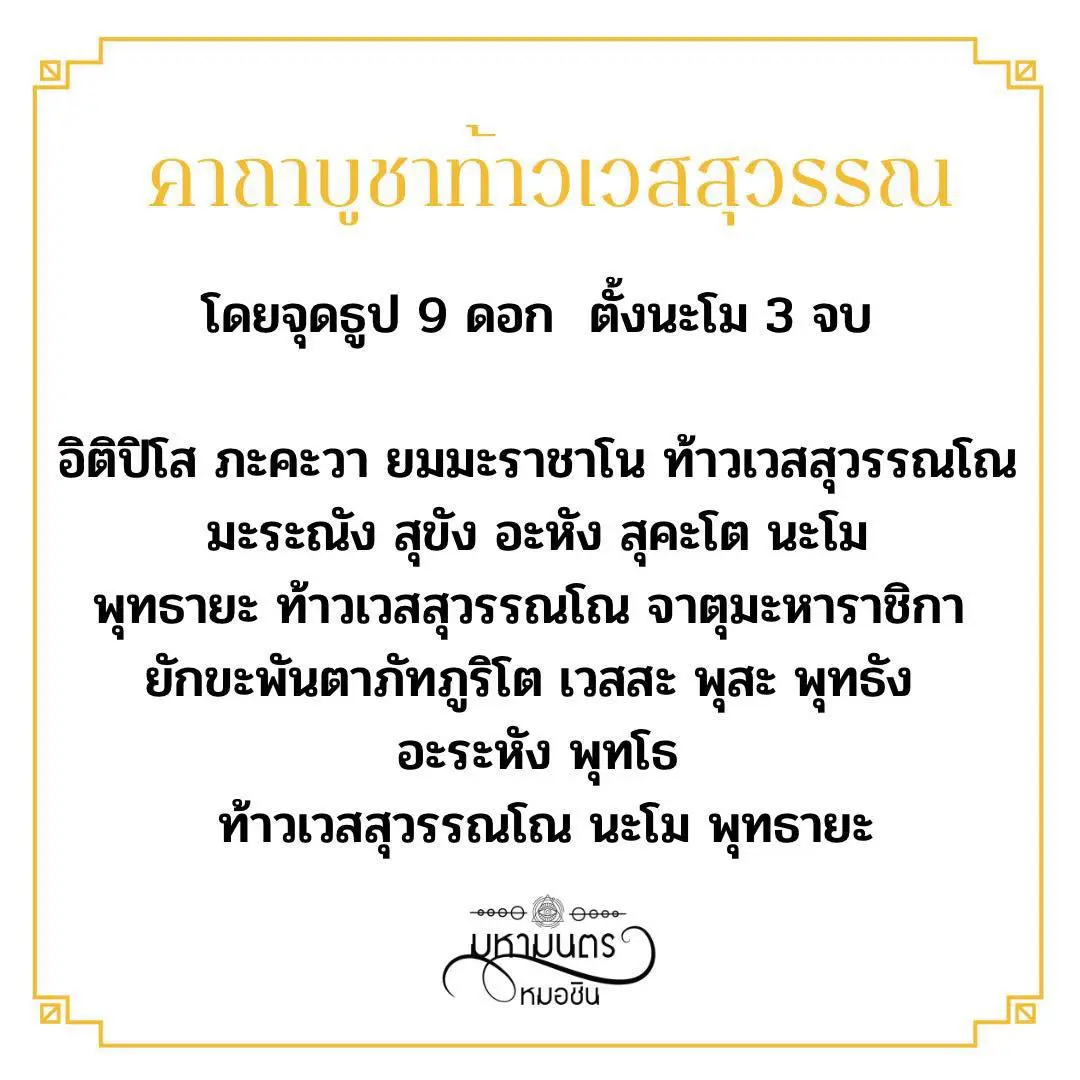 หมอชิน มหามนตรา เผย คาถาบูชาท้าวเวสสุวรรณ เพิ่มความมู เพื่อความเฮง ความปัง ให้การเงินการงานก้าวหน้า โดยได้โพสต์ผ่านแฟนเพจ หมอชิน มหามนตรา