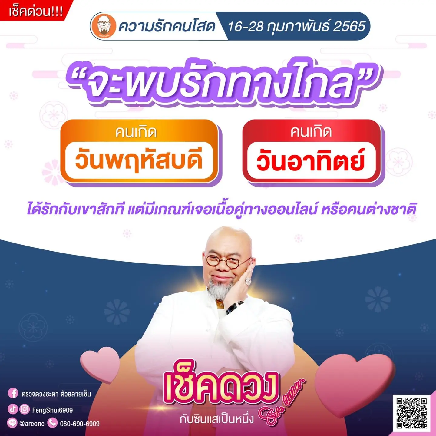 ซินแสเป็นหนึ่ง ได้กล่าวถึง ดวง 2 วันเกิด พบรักทางไกล