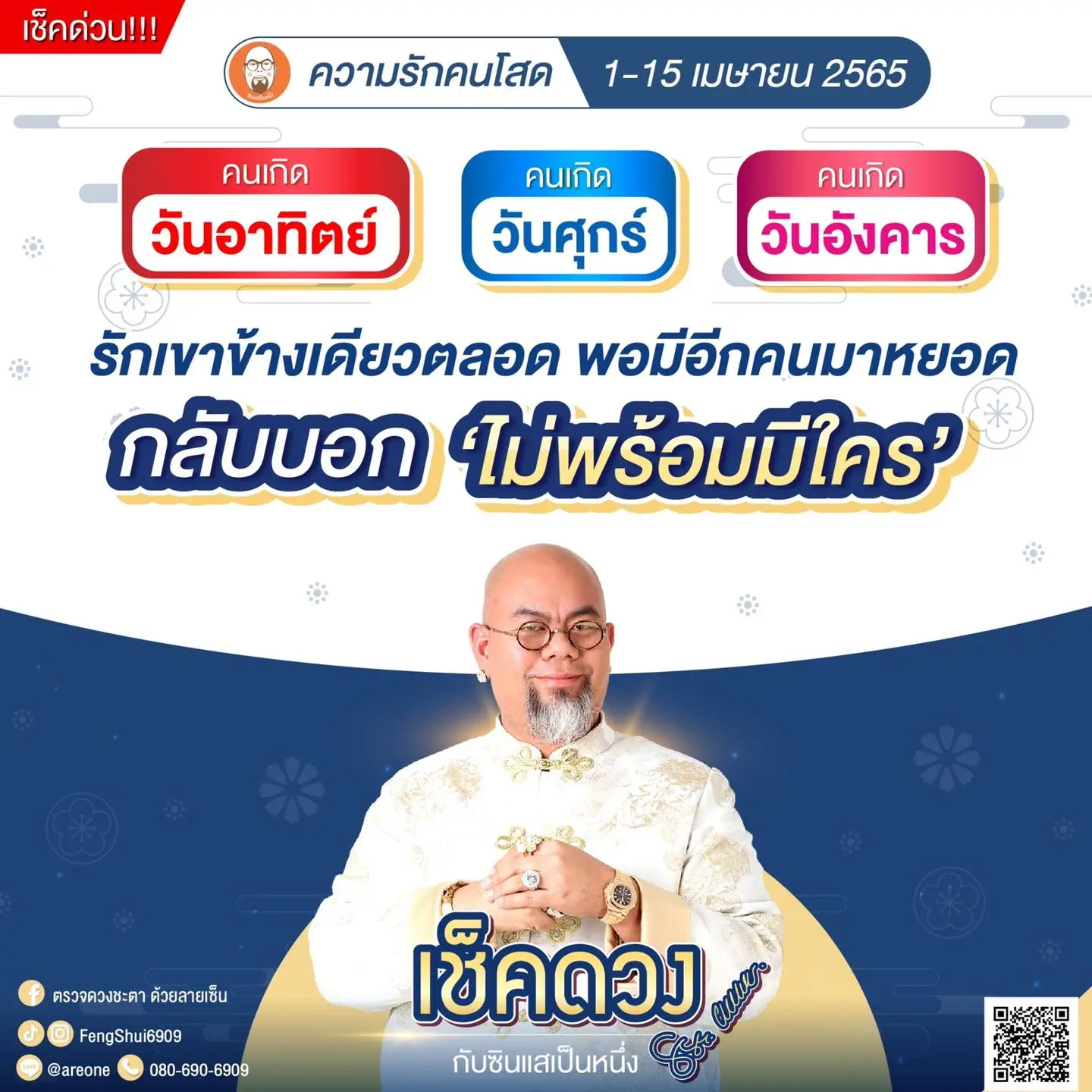 อาจารย์เป็นหนึ่ง วงษ์ภูดร เผย ดวง 3 วันเกิด ตะโกน!! อยากมีแฟน แต่ยังไม่พร้อมที่จะมีใคร โดยได้โพสต์ผ่านทางแฟนเพจ ตรวจดวงชะตา ด้วยลายเซ็นต์