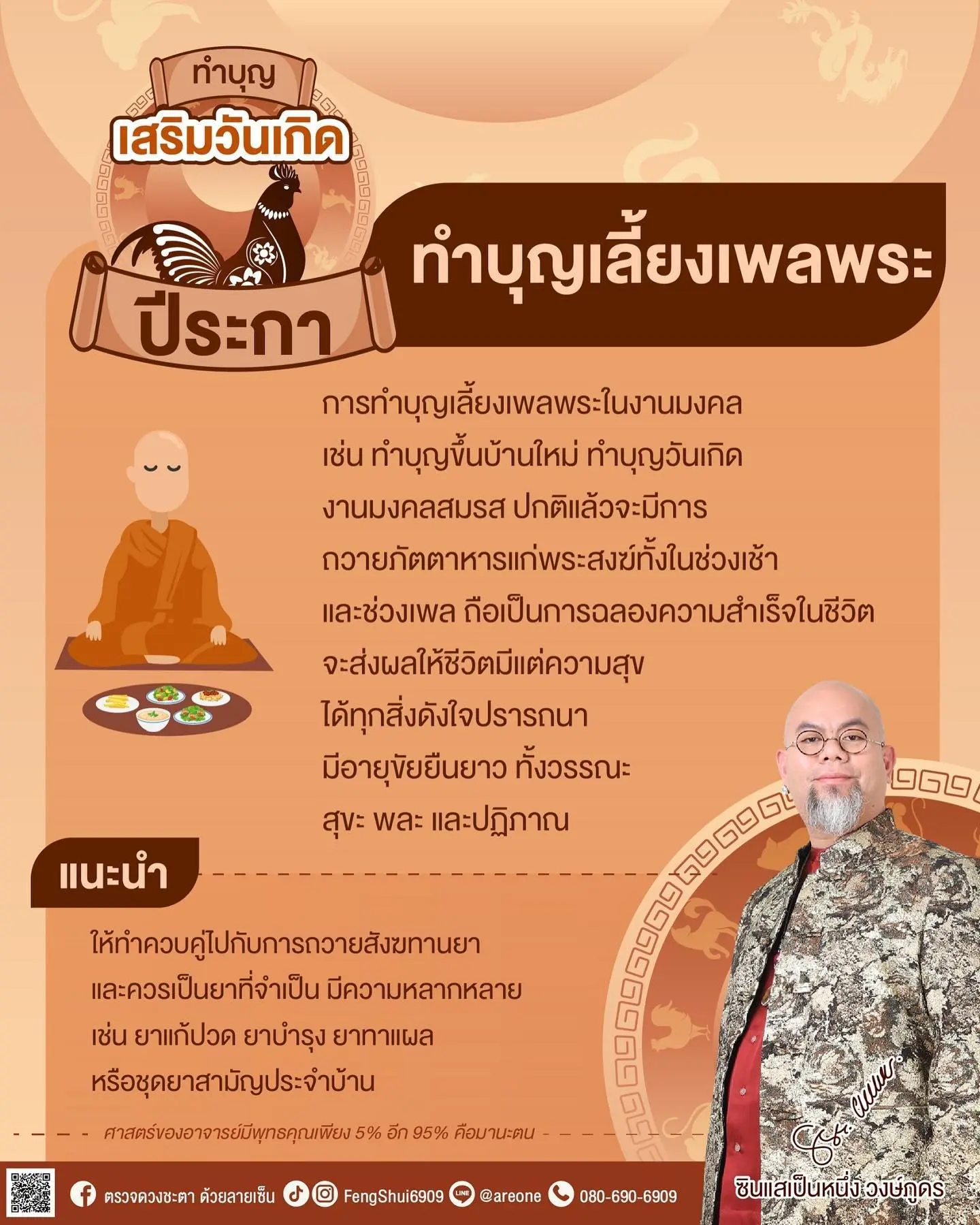 ปีระกา ควรเสริมดวงด้วยการ ทำบุญเลี้ยงเพลพระ