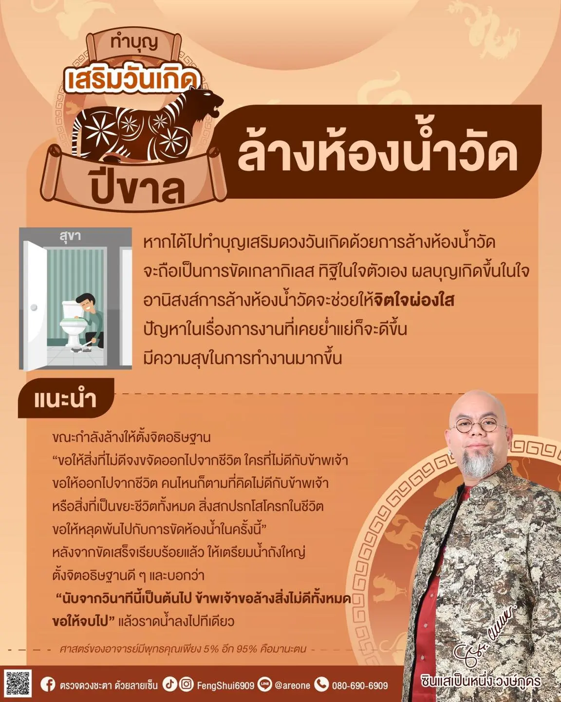ปีขาล ควรเสริมดวงด้วยการ ล้างห้องน้ำวัด