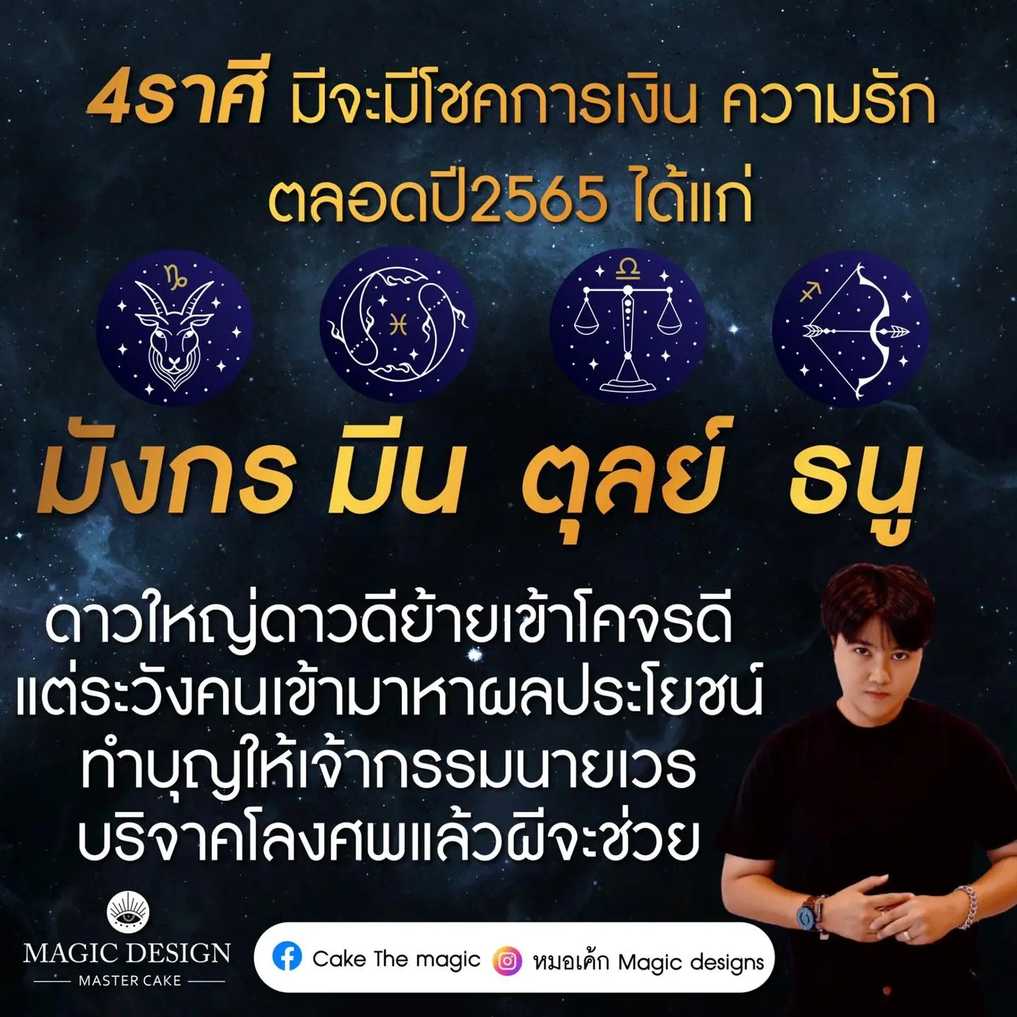หมอเค้ก Magic stone เผย ดวง 4 ราศี ผีจะช่วย มีโชคการเงิน ความรัก ตลอดปี โดยได้โพสต์ผ่านแฟนเพจ หมอเค้ก Magic stone
