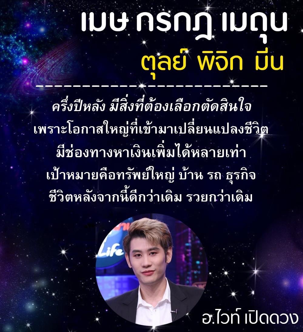 เช็คดวงชะตากับ อ.ไวท์ เปิดดวง ได้โพสต์ผ่านเฟสบุ๊คแฟนเพจ White Jewel ว่า ครึ่งปีหลังมีเรื่องต้องตัดสินใจ!