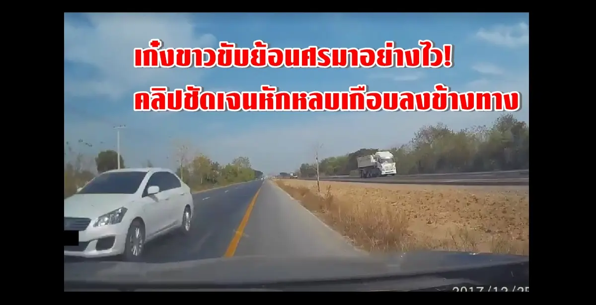 แชร์สนั้นโลกออนไลน์กับคลิปจากกล้องหน้ารถยนต์ที่ขับมาตามถนน 2 เลน แต่จู่ๆมีรถสีขาวพุ่งย้อนศรมาด้วยความเร็วแถมไม่คิดจะหลบรถเจ้าของคลิปตกใจแต่ยังมีสติหักหลบทันไม่งั้นประสานงาเละแน่นอน