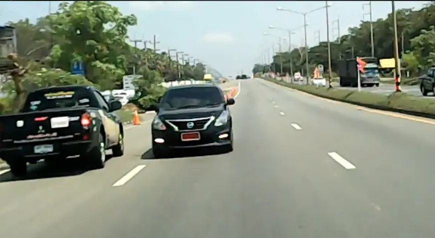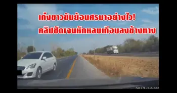 คลิปจากกล้องหน้ารถยนต์เผยให้เห็นพฤติกรรมของรถเก๋งป้ายแดงกลับรถย้อนศรทำผู้ใช้รถใช้ถนนรายอื่นเดือดร้อน จวกยับขับแบบนี้เดี๋ยวได้ใช้บริการประกันหรอก