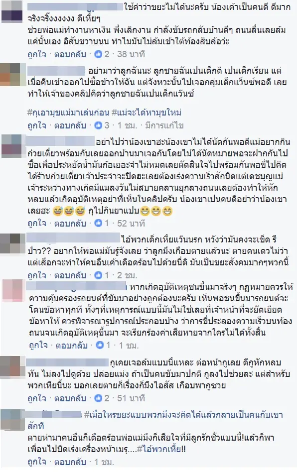 อย่างไรก็ตามแฟนเพจชื่อดังประนามพฤติกรรมของเด็กแว้นที่สร้างความเดือดร้อนแก่ผู้ใช้รถใช้ถนนเพราะหากรถยนต์คันดังกล่าวเบรคไม่ทันอาจเกิดเหตุสลดจากความคึกคะนองที่มีต้นเหตุมาจากเด็กแว้นได้