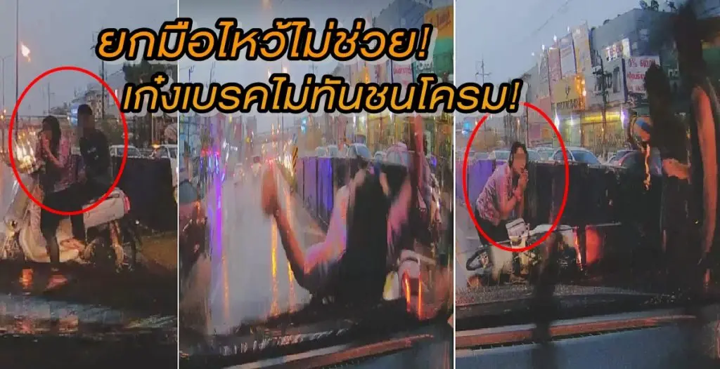 อุทาหรณ์ “ยกมือไหว้ก่อนถูกชน” มอไซค์อ่วมงานนี้ประมาทสุดๆ (คลิป)
