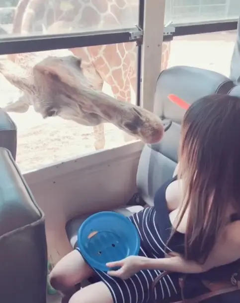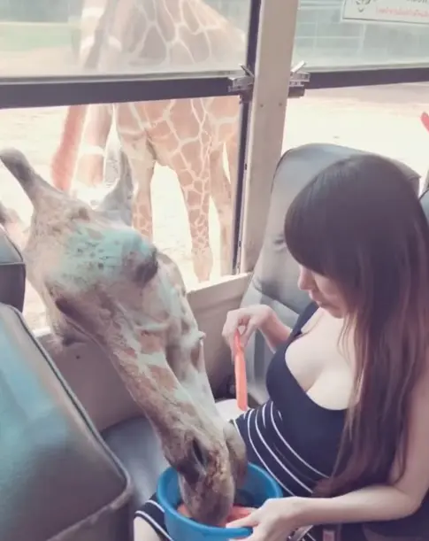แหม่…เล่นเอาใจคอไม่ดีเลยกับคลิปสาวสวยผิวขาวจั๊วะที่กำลังให้อาหารยีราฟผ่านหน้าต่างรถบัสเยี่ยมชมสวนสัตว์ สำหรับความพีคคือจังหวะที่เจ้ายีราฟดันไม่กินแครอทแต่กลับแลบลิ้นแผล่บๆเฉี่ยวหน้าอกสาวสวยไปซะนี่ หืม! บอกเลยนะว่าห้าม! อันนั้นไม่ใช่ของกินเด้อ อิอิ