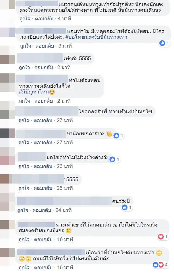 คลิปจากเฟซบุ๊กชื่อ Wanchart Sbp ถ่ายเหตุการณ์จักรยานยนต์ขับตามหนุ่มรายหนึ่งบนฟุตปาธระบุว่า “ความเก๋านี้ท่านได้แต่ใดมาถือว่าพี่ทำถูกละครับไอดอลผมเลยย555555555555”