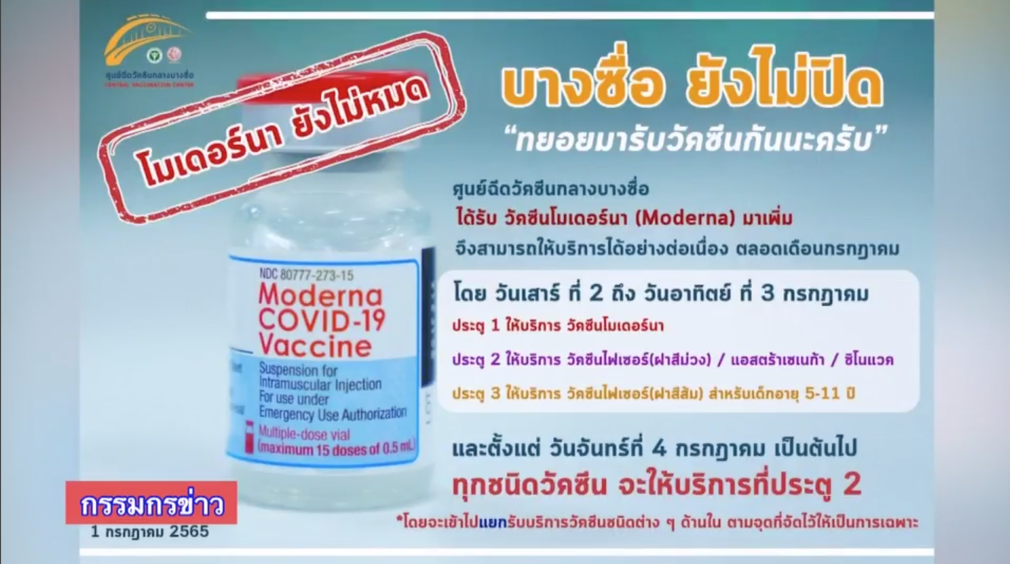 ที่ศูนย์วัคซีนกลางบางซื่อ โดยมีภาพประชาชน ต่อแถวรอฉีดวัคซีนโมเดอร์น่า เป็นจำนวนมาก นั้น