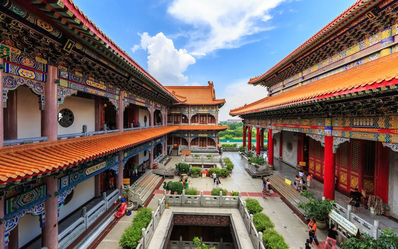วัดพุทธบริษัทไทย-จีน บรรยากาศร่มรื่นสบายตา ไม่ว่าจะผ่านมุมไหนก็รู้สึกสงบจิตสงบใจด้วยสวนหย่อม สวนหินต่างๆ และรูปปั้นหินที่ประดับประดาอยู่รอบๆ วัด โดยภายในวัดมีทั้ง อุโบสถที่เป็นลักษณะพุทธศิลป์แบบจีนมหายานสมัยยุคหมิง – ชิง ที่มีภาพเขียนลวดลายวิจิตรงดงาม รวมถึงมีพระประธานที่ใหญ่ที่สุดในไทยซึ่งเป็นพุทธศิลป์จีนเช่นกัน ทั้งงดงามและอลังการอย่างมาก จะไหว้พระก็อิ่มบุญ หรือจะถ่ายรูปก็อิ่มเอมใจ