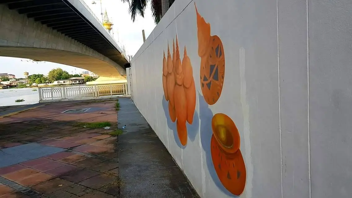 สตรีทอาร์ทสุดชิคประจำนนทบุรี อยู่ใต้สะพานมหาเจษฎาบดินทร์ ที่เรียงรายไปด้วยภาพวาดสามมิติบนกำแพง และตอหม้อสะพาน ถือว่าสวยงามสมจริงมากๆ โดยแต่ละภาพจะสะท้อนเรื่องราว วิถีชีวิต ประเพณี วัฒนธรรม ของดีของชาวนนท์ ที่แสดงถึงอัตลักษณ์ของเมืองนนท์ รับรองว่าจะถ่ายมุมไหนก็สวยทั้งนั้น
