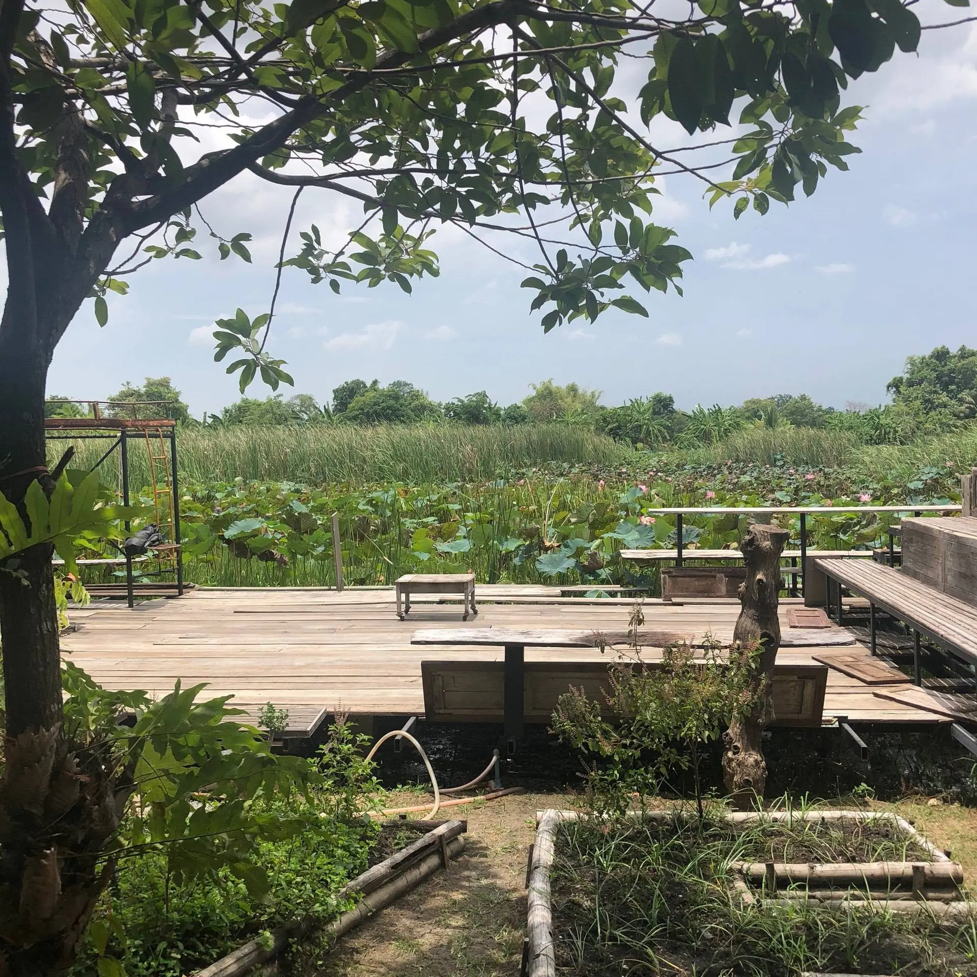 ร้านอาหารริมน้ำสระบัว ท้องนา และทุ่งกกสูง ตัวร้านเป็นบ้านปูนกึ่งไม้หลังเก่า ภายในตกแต่งด้วยเฟอร์นิเจอร์และของตกแต่งโบราณแบบไทยๆ บรรยากาศเสมือนได้ย้อนวันวานในวัยเด็ก มีชานบ้านกว้างขวางบริการเป็นโซนเอาท์ดอร์ให้ลูกค้าได้นั่งเหยียดขาทานอาหารอร่อยๆ ไม่ว่าจะอาหารไทยหรืออีสานก็มีให้เลือกสรร เมนูเด็ดขอแนะนำ ข้าวห่อใบบัว เมี่ยงปลาช่อนกลีบบัว และสุกี้ไหลบัวกระทะร้อน พร้อมชมธรรมชาติที่เป็นเอกลักษณ์ยามเย็นตอนพระอาทิตย์ตกดิน และสำหรับใครที่ยังไม่เต็มอิ่ม อยากสัมผัสบรรยากาศข้ามคืน ที่นี่มีบริการบ้านพักโฮมสเตย์ บอกได้เลยว่า กิน พัก เที่ยว ครบในที่เดียว