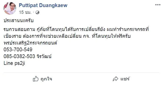 - หนุ่มใจดีอาสาเปลี่ยนกระจกรถให้หน่วยกู้ภัยที่โดนทุบกระจก แบบไม่คิดค่าใช้จ่าย