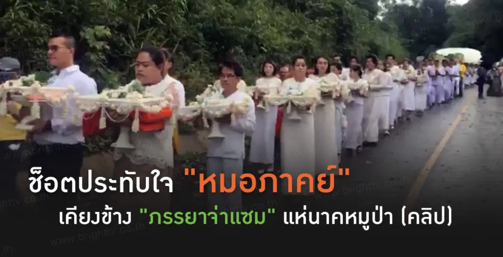 เช้านี้เวลา 08.00 ฤกษ์งามยามดีท่ามกลางอากาศ 20 องศาได้มีพิธีบรรพชาอุปสมบททีมหมูป่าอะคาเดมี่ทั้ง 12 ชีวิต ณ วัดพระธาตุดอยตุง อ.แม่สาย จ.เชียงราย ซึ่งจัดพิธีตามประเพณีล้านนา ผู้คนในงานต่างพากันนุ่งขาวห่มขาว โดยเด็กๆทั้ง 11 คนจะบรรพชาเป็นสามเณร 9 วัน ส่วนโค้ชเอกอุปสมบทเป็นพระภิกษุ ได้ฉายาว่า วิสาระสุทโธ งานนี้บรรดาญาติและผู้มีจิตศรัทธาต่างเข้าร่วมพืธีกันอย่างคับคั่ง หนึ่งในนั้นคือ 2 ฮีโร่จากถ้ำหลวงคือ “หมอภาคย์” หรือ พ.ท.นพ. ภาคย์ โลหารชุน กับ “นางวลีพร กุนัน” ภรรยา น.ต.สมาน กุนัน หรือจ่าแซมวีรีบุรุษผู้เสียสละชีวิตในภารกิจช่วยเหลือคราวนั้น จึงเกิดเป็นภาพความประทับใจเมื่อทั้งสองร่วมอยู่ในขบวนแห่นาค ทั้งนี้หมอภาคย์ยังกล่าวทักทาย พร้อมให้กำลังใจกับนางวลีพรอย่างเป็นกันเอง ทางด้านนางวลีพรก็มีสีหน้าที่ผ่อนคลาย ยิ้มแย้มและภาคภูมิใจ