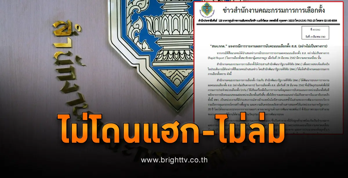 กกต.ยันระบบรายงานผลคะแนนเลือกตั้ง “ไม่ล่ม-ไม่โดนแฮก” แจงปล่อยข้อมูลเป็นระยะๆ เพราะการเรียกข้อมูลมีความถี่ “สูง”