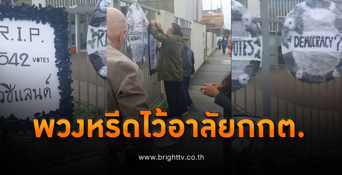 คนไทยใน “นิวซีแลนด์” วางพวงหรีดหน้าสถานทูตไทย กรุงเวลลิงตัน ไว้อาลัย “กกต.” เหตุไม่นับคะแนนบัตรเลือกตั้ง