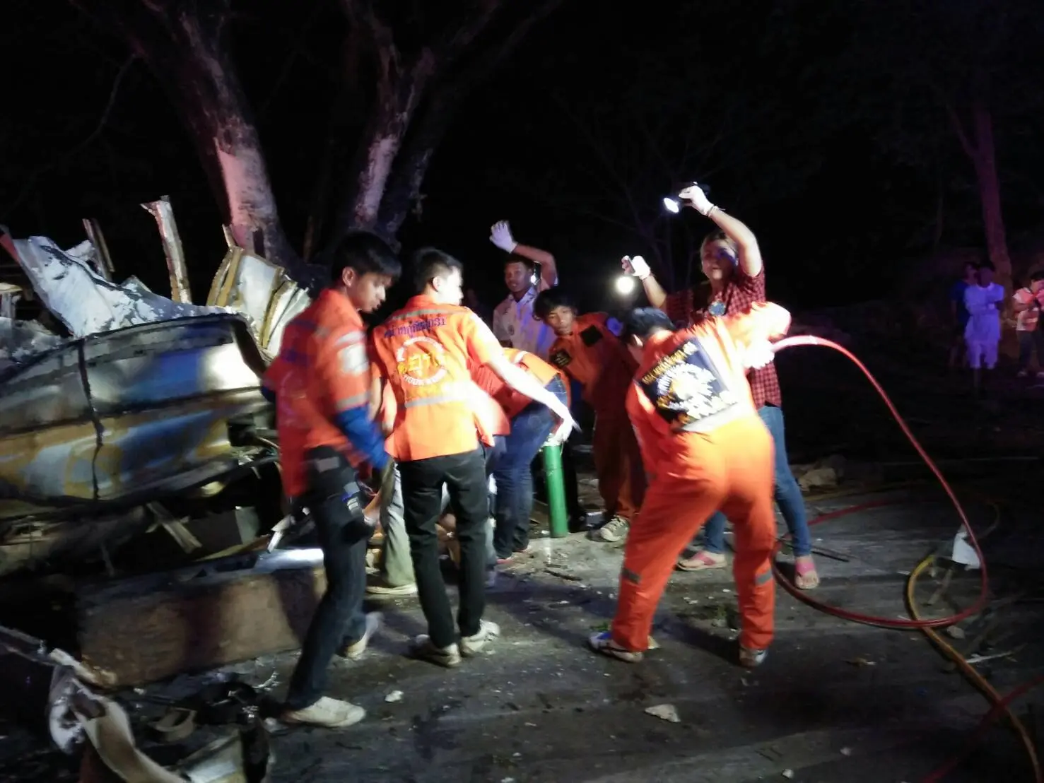สำหรับรถทัวร์ดังกล่าวนั้น เป็นรถทัวร์ที่ชาวบ้านมีการจ้างวานจาก จ.สกลนคร เพื่อไปเที่ยวที่จ.จันทบุรี ซึ่งเหตุเกิดขณะที่ทั้งหมดกำลังเดินกลับไปยัง จ.สกลนคร อย่างไรก็ตาม ล่าสุดเจ้าหน้าที่อยู่ระหว่างระดมกำลังเร่งช่วยเหลือผู้ที่ติดอยู่ในซากรถคันดังกล่าวออกมาให้ได้โดยเร็วที่สุด