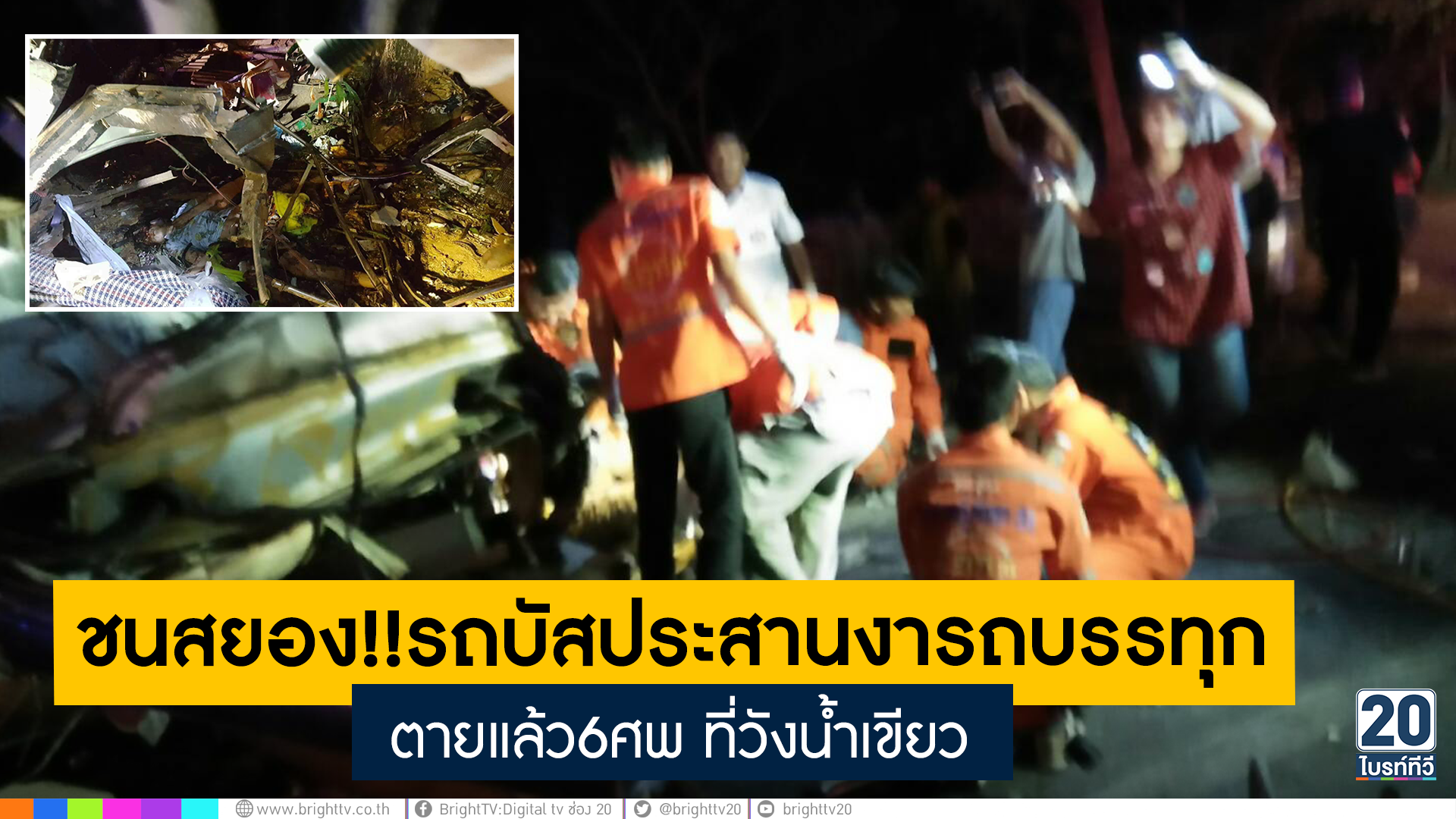 เหตุเกิดเมื่อช่วงหัวค่ำที่ผ่านมา ที่เกิดเหตุเป็นโค้งที่เรียกว่า โค้งมะกรูดหวาน  ต.อุดมทรัพย์ อ.วังน้ำเขียว จ.นครราชสีมา เป็นรถบัสสภาพกลายเป็นเศษเหล็กชนประสานงาอย่างรุนแรงกับรถบรรทุกพ่วง18ล้อ เบื้องต้น มีผู้เสียชีวิตทันที6ราย และบาดเจ็บอีกประมาณ50ราย คาดว่าจะมีผู้เสียชีวิตเพิ่มขึ้น เนื่องจากยังมีผู้ที่ติดอยู่ภายในซากรถอีกหลายราย