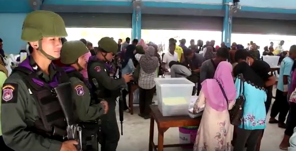 สำหรับบรรยากาศภาคใต้ ที่ จ.นราธิวาส เจ้าหน้าที่ กกต.จ.นราธิวาส ได้ลำเลียงบัตรลงคะแนนเสียงเลือกตั้ง สส.แบบแบ่งเขต และอุปกรณ์ต่างๆ ส่งไปยังเจ้าหน้าที่ในพื้นที่ทั้ง 13 อำเภอ ของ จ.นราธิวาส ซึ่งมีจำนวนหน่วยเลือกตั้งทั้งสิ้น 927 หน่วย ใน 4 เขต เพื่อให้ผู้มีสิทธิ์ลงคะแนนเสียงเลือกตั้งจำนวนทั้งสิ้น 550,692 คน ทั้งนี้ยังดูแลความเรียบร้อยการแจกบัตรลงคะแนน ในพื้นที่เขตการเลือกตั้งที่ 1 ซึ่งมี 2 อำเภอ ได้แก่ อำเภอเมือง และ อำเภอตากใบ โดยอำเภอเมืองมีผู้มีสิทธิ์ลงคะแนนเสียงเลือกตั้ง จำนวน 86,867 คน และมีหน่วยเลือกตั้งทั้งสิ้น 131 หน่วยเลือกตั้ง พร้อมกับเตรียมพร้อมเจ้าหน้าที่ดูแลความปลอดภัยสกัดกั้นมือที่ 3 เพื่อสร้างสถานการณ์ร้ายให้เกิดขึ้นด้วย