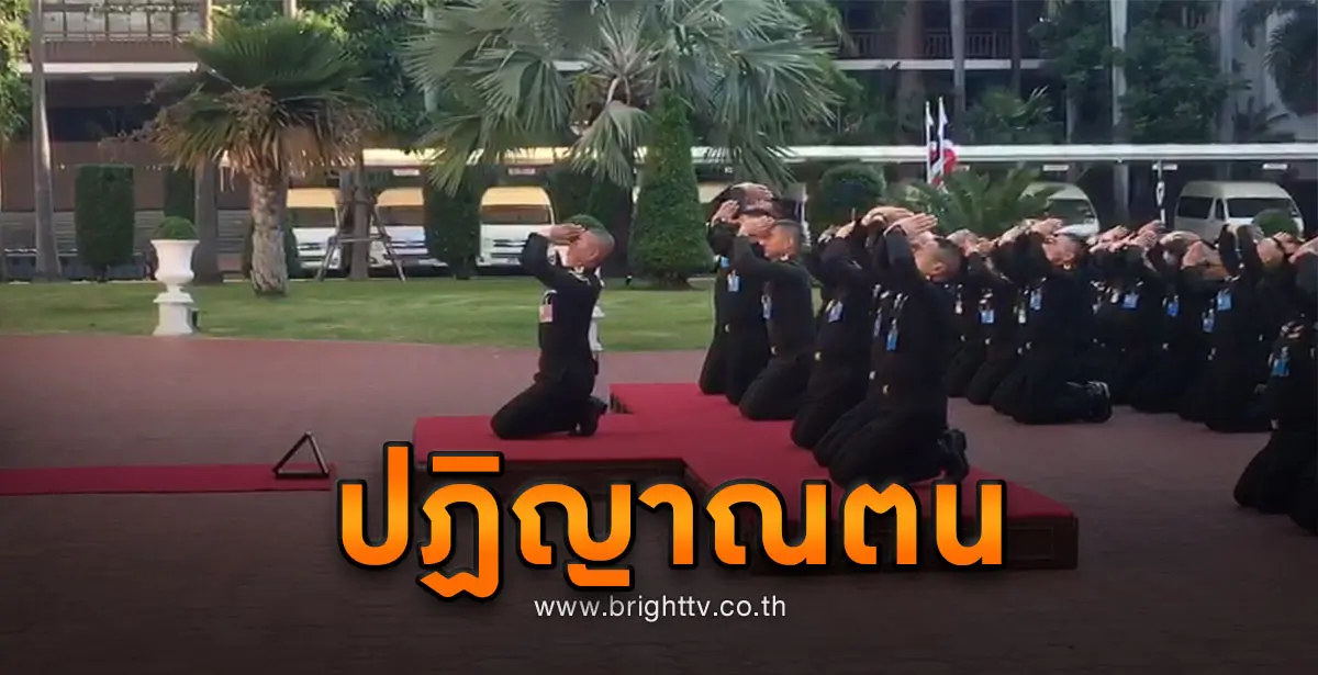 “ข้าพเจ้าจะรักษาไว้ซึ่งพระบรมเดชานุภาพแห่งพระมหากษัตริย์เจ้า เกียรติยศและศักดิ์ศรีของทหาร ข้าพเจ้าในฐานะเจ้าหน้าที่ของรัฐ จะสนับสนุนรัฐบาลที่ยึดมั่นในการปกครองระบอบประชาธิปไตย อันมีพระมหากษัตริย์ทรงเป็นประมุข มีความจงรักภักดีและมีธรรมาภิบาล ข้าพเจ้าจะดูแลช่วยเหลือ เป็นที่พึ่งของประชาชนในทุกโอกาส และจะปกครองดูแลผู้ใต้บังคับบัญชาและครอบครัว ด้วยความเมตตาและเป็นธรรม” ต่อด้วยการถวายบังคม 3 ครั้ง