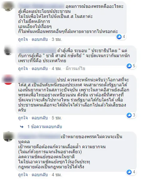 ทั้งนี้ มีผู้เข้าไปแสดงความเห็นจำนวนมาก โดยมีทั้งที่เสนอให้ ปชป. ร่วมจัดตั้งรัฐบาลกับพรรคพลังประชารัฐ (พปชร.) และเสนอให้ ปชป.ยึดหลักการของพรรคที่จะต่อต้านเผด็จการเป็นหลัก อย่างไรก็ตามความเห็นจำนวนมากขอให้ ปชป.คำนึงถึงการแก้ไขปัญหาปากท้องของประชาชนเป็นหลัก