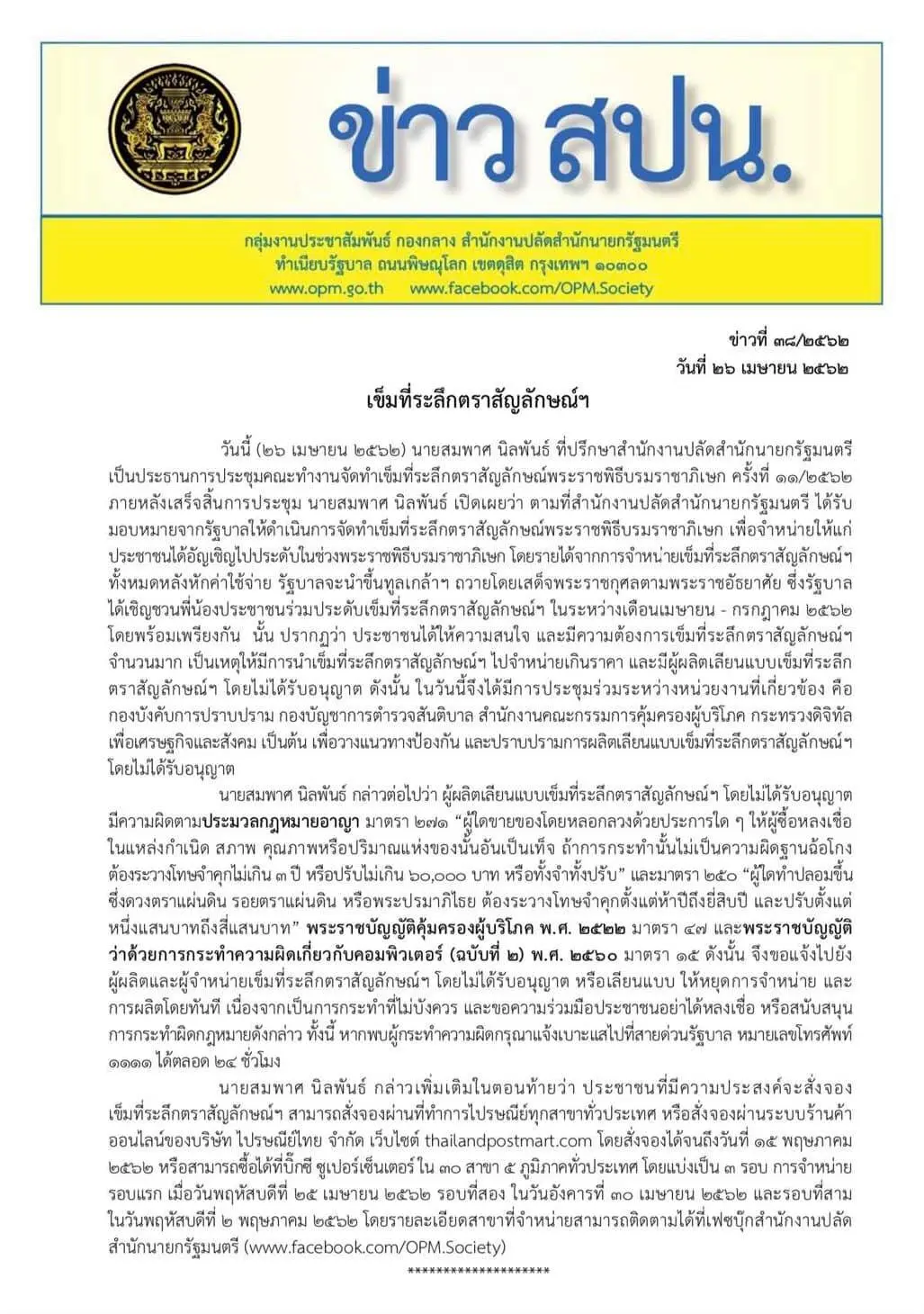 สปน. เตือน ! ผู้ผลิตเลียนแบบ เข็มที่ระลึกตราสัญลักษณ์ฯ โดยไม่ได้รับอนุญาต มีความผิดตามประมวลกฎหมายอาญา มาตรา 271 และมาตรา 240 เปิดรับแจ้งผ่านสายด่วน 1111 ตลอด 24 ชั่วโมง