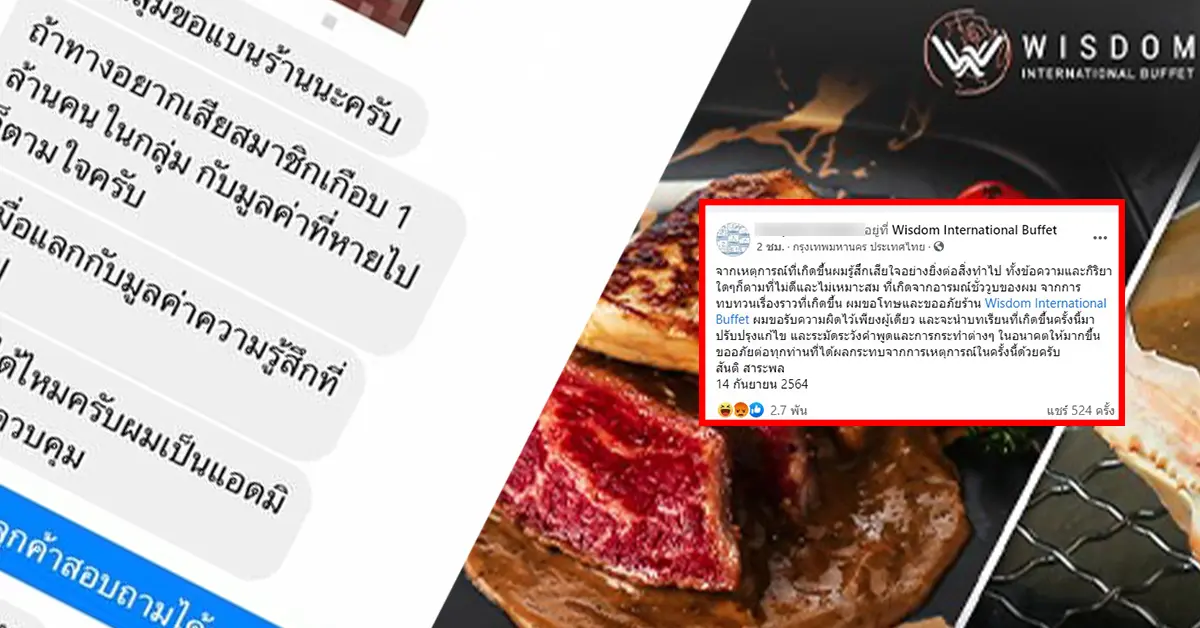 แอดมินกลุ่ม ข่มขู่ร้านบุฟเฟ่ต์ ขอโทษแล้ว ขอรับผิดแต่เพียงผู้เดียว