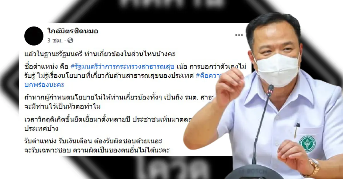 เรียกได้ว่าทำให้เพจ ใกล้มิตรชิดหมอ ถึงกับตั้งคำถามกับคำพูดของ รมต.กระทรวงสาธารณสุขอีกครั้ง โดยทางเพจระบุว่า