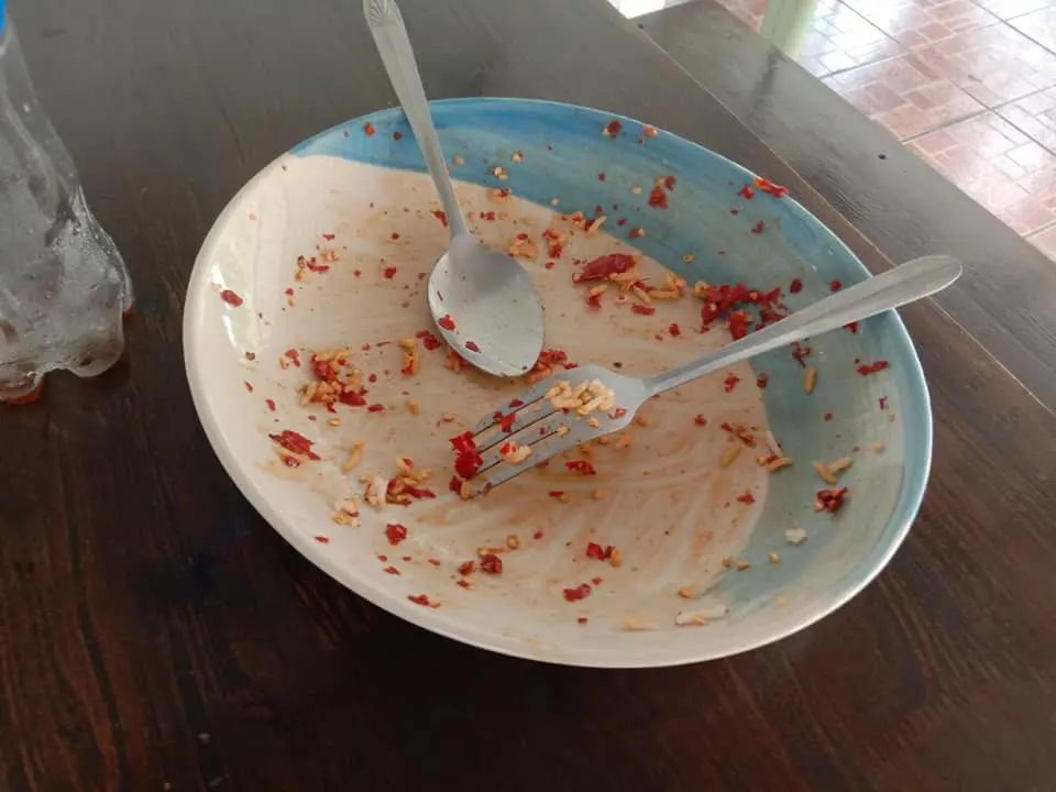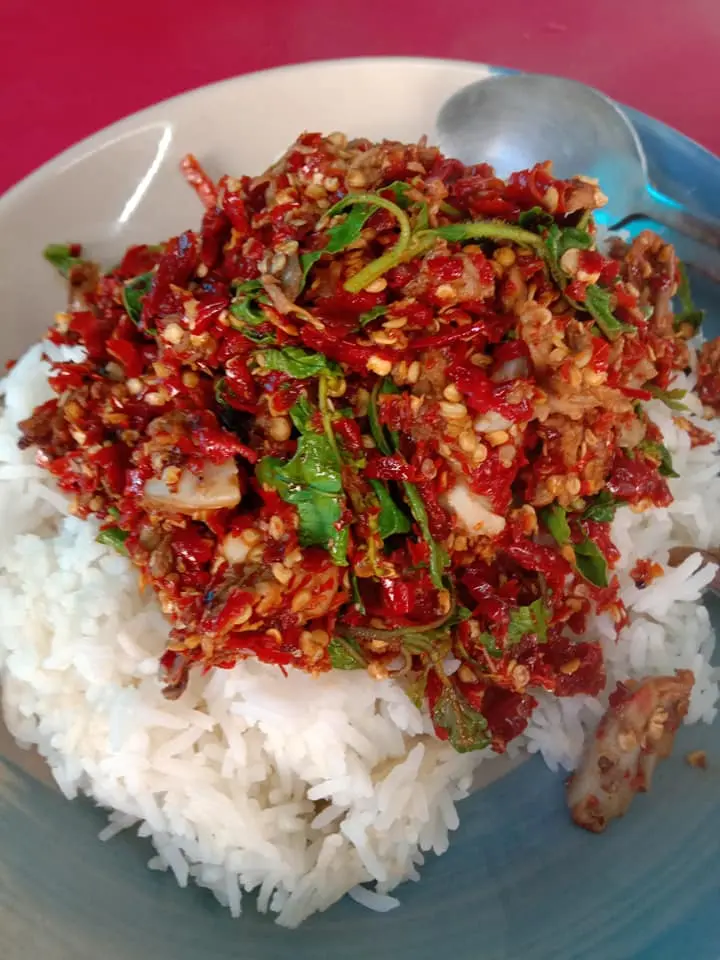 ทุบสถิติของทางร้านไปเลยค่ะกับจานนี้ พริก 3 ทัพพีก่อนหน้านี้คุณพี่ไรเดอร์ ท่านนี้ เคยมาทานกะเพราของที่ร้านและสั่งพริก ทัพพีครึ่ง คือเผ็ดปากแตก…แต่วันนี้เขามาทำลายสถิติของตัวเองโดยการสั่งใส่พริก 3 ทัพพีปล.เป็นความสามารถและความชอบส่วนบุคคลนะคะโปรดใช้วิจารณญาณในการสั่ง..