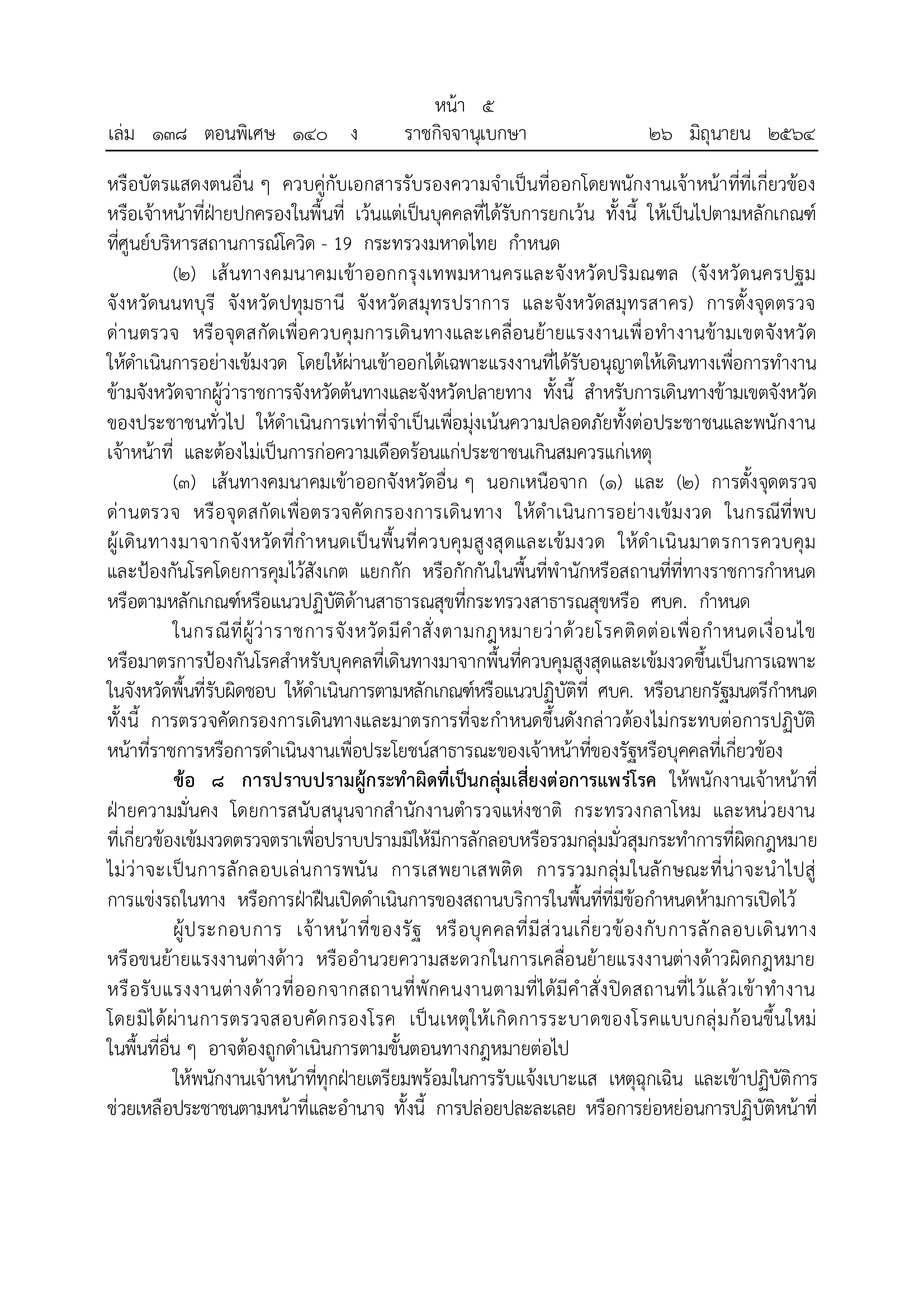 ล่าสุด 26 มิ.ย.64 เว็บไซต์ราชกิจจานุเบกษา เผยแพร่ ข้อกำหนดออกตามความในมาตรา 9 แห่งพระราชกำหนดการบริหารราชการในสถานการณ์ฉุกเฉิน พ.ศ. 2548 (ฉบับที่ 25) มีสาระสำคัญเรื่องการ ล็อกดาวน์กรุงเทพมหานคร – ปริมณฑล จังหวัดนครปฐม จังหวัดนนทบุรี จังหวัดปทุมธานี จังหวัดสมุทรปราการ และจังหวัดสมุทรสาคร และพื้นที่จังหวัดชายแดนภาคใต้ (จังหวัดนราธิวาส จังหวัดปัตตานี จังหวัดยะลา และจังหวัดสงขลา ซึ่งลงนาม โดยพล.อ.ประยุทธ์ จันทร์โอชา นายกรัฐมนตรี โดยมีเนื้อหาดังนี้