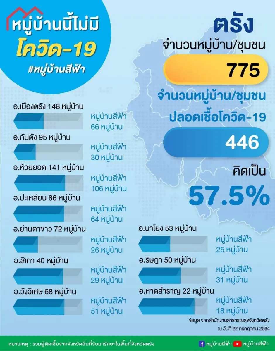 หมู่บ้านสีฟ้าปลอดโควิด-19 – วันนี้ 1 ส.ค. 64 หลังจาก พล.อ.ประยุทธ์ จันทร์โอชา นายกรัฐมนตรี และรมว.กลาโหม ในฐานะผู้อำนวยการศูนย์บริหารสถานการณ์การแพร่ระบาด ของโรคติดเชื้อไวรัสโคโรนา 2019 (โควิด – 19) ได้แถลง มาตรการควบคุมการระบาดโควิด-19 ขยายล็อกดาวน์ อีก 14 วัน ขยายพื้นที่ควบคุมสูงสุดและเข้มงวด หรือพื้นที่สีแดงเข้ม จากเดิม 13 จังหวัด เป็น 29 จังหวัด