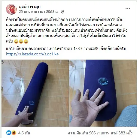 หนุ่มติดหมอนข้าง เป็นงง จะไปกางเต็นท์เลยซื้อหมอนข้างแบบเป่าลมมาจากเน็ต พบ หมอนข้างมีรู โพสต์ชาวเน็ตว่ามีไว้ทำไม