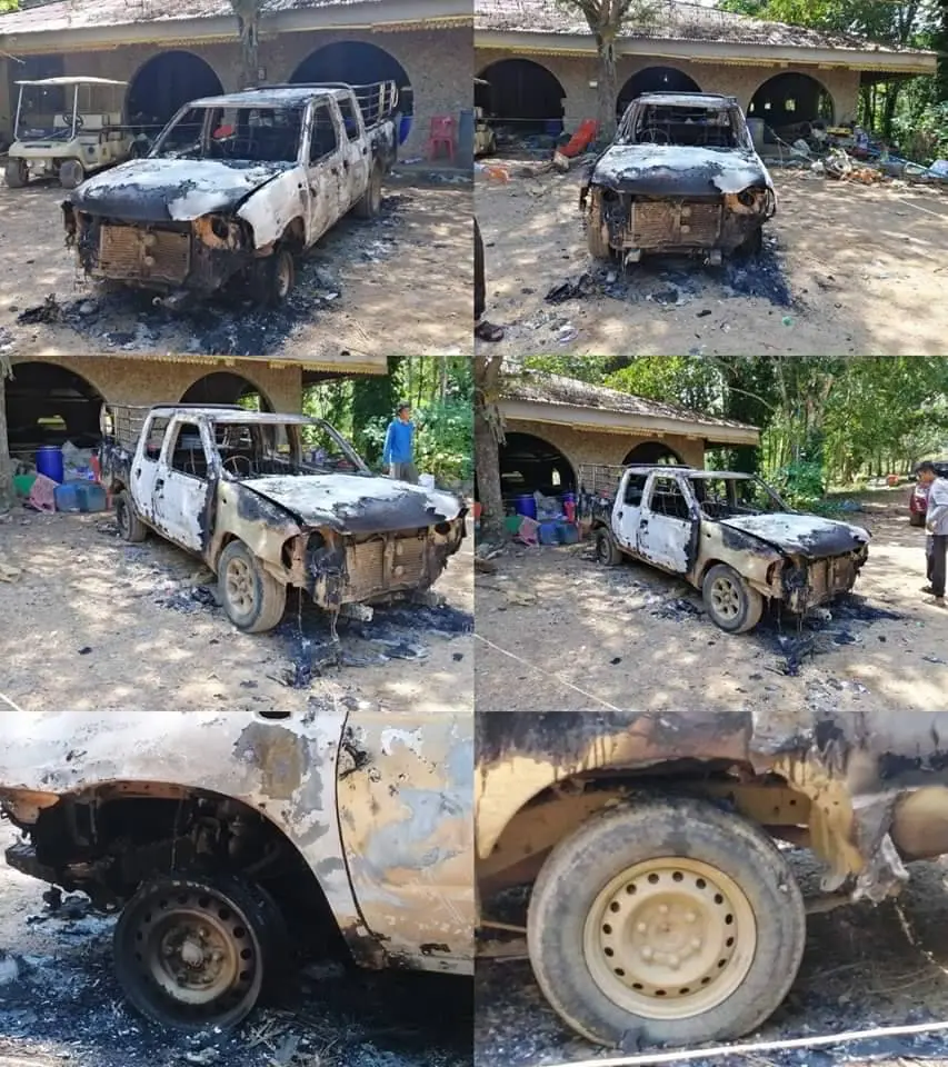 “ไม่ชอบหน้ากันจนถึงกับต้องเผากันเลยเชียวหรือ อยู่ดีๆ ก็มีคนงานที่ทองผาภูมิโทรมาแจ้งว่า คือวันที่ ๑๐ ตุลาคม ๒๕๖๒ มีคนมาลอบเผารถกระบะสีทองบลอน ๔ ประตู