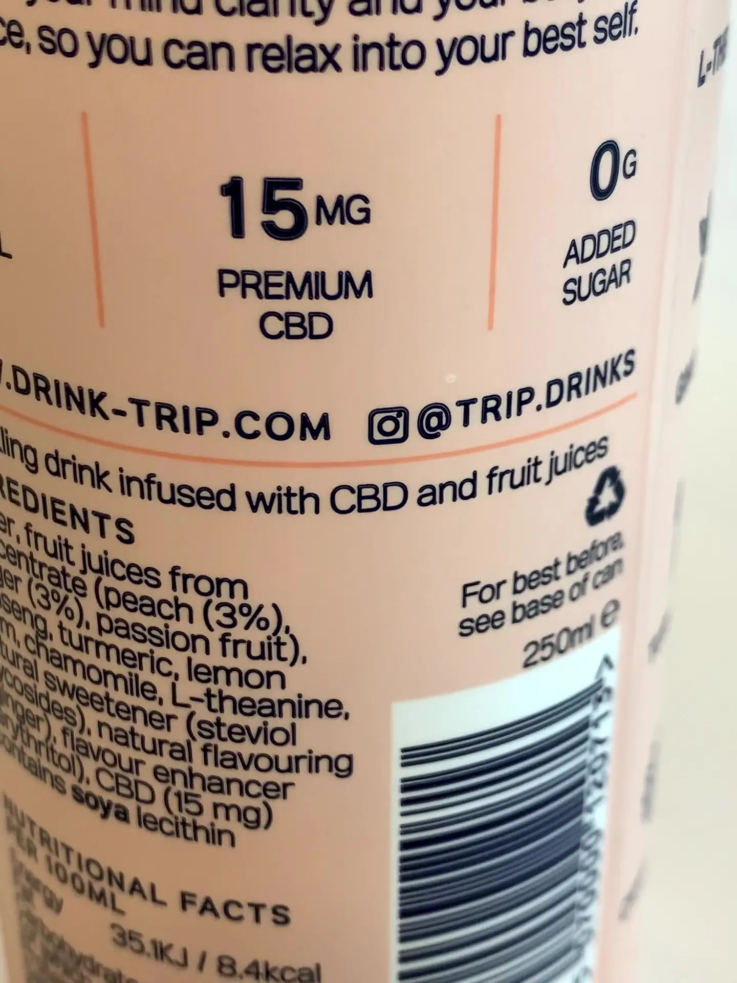 ซึ่งตัวเครื่องดื่มที่ได้จดทะเบียนในลอนดอนเหนือ มี 2. รสชาติ เครื่องดื่มนี้มีสาร CBD. บรรจุ 15 mg พร้อม ส่วนผสมอื่น ๆ มีน้ำมะนาว,จินเซง, ไอร์คิวมาร์ค รวมถึงกรดอะมิโน ที่เรียกว่า L-theanine
