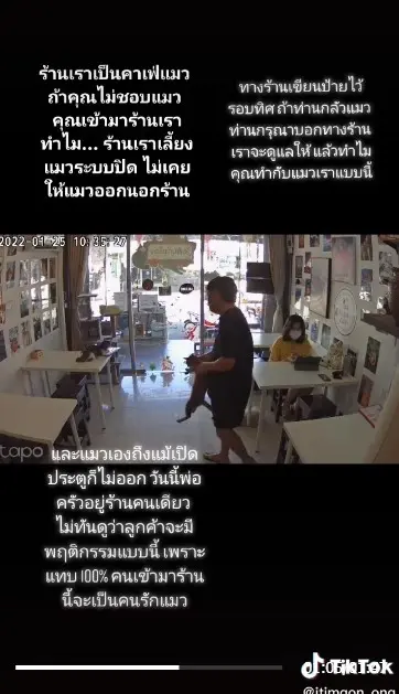 จากกรณีที่คาเฟ่แมวแห่งหนึ่งได้เผยแพร่ภาพ วีรกรรมสุดแสบของลูกค้ารายหนึ่งซึ่งมากันสองคนพ่อลูก ที่พยายามไล่แมวที่อยู่ใกล้ออกไปห่าง แต่ไล่เท่าไหร่ก็ไม่ไปจนตัดสินใจ อุ้มแมวตัวดังกล่าวออกไปข้างนอกร้าน ซึ่งคาดว่าลูกค้ารายนี้ไม่ชอบแมวมาก เพราะ ทั้งใช้เท้าเขี่ยแมว หรือไล่แมวที่นั้งอยู่เฉยๆ ซึ่งก็ทำให้สงสัยว่าจะเข้ามาในคาเฟ่แมวทำไม