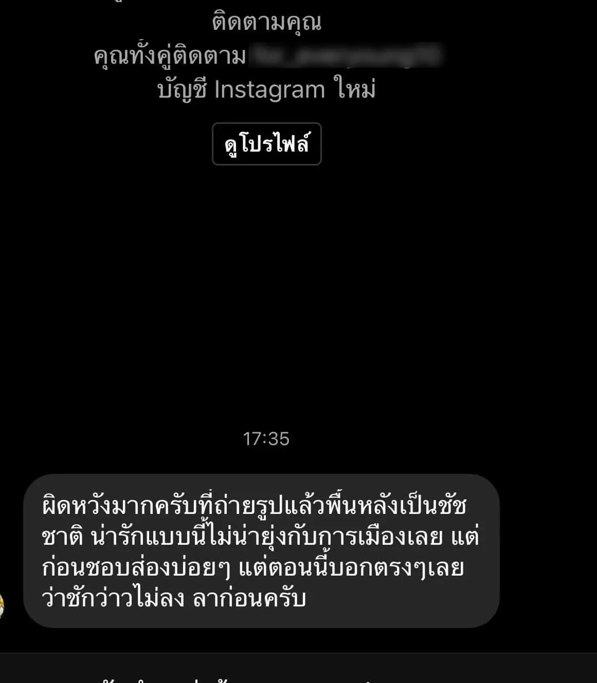 ผิดหวังมากครับที่ถ่ายรูปแล้วพื้นหลังเป็นชัชชาติ น่ารักแบบนี้ไม่น่ายุ่งการเมืองเลย แต่ก่อนชอบส่องบ่อยๆ แต่ตอนนี้บอกตรงๆเลย ชัก…ไม่ลง ลาก่อนครับ