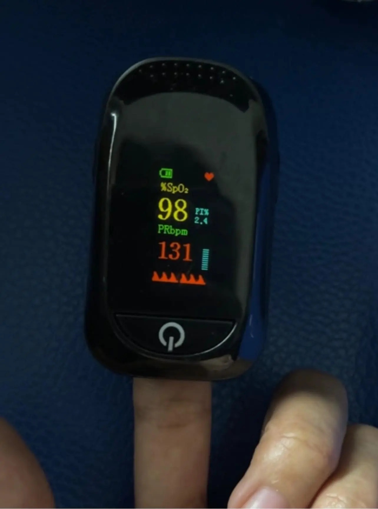 เมื่อผ่านไป 3 ชั่วโมง ขณะที่เธอนอนอยู่กำลังจะหลับ เริ่มรู้สึกอยากจะอาเจียน ใจสั่น มือสั่น วัด pluse oximeter ปลายนิ้วหัวใจเต้น 129-134 ด้วยความที่ตกใจมาก จึงพุ่งไปถึง 140 เลยตั้งสติแล้วเลิกตกใจ เพราะ กลัวตาย รีบโทรหา ER พยาบาลแนะนำให้ออกมาสูดอากาศด้านนอก ดื่มน้ำเยอะๆ แต่ก็ไม่หาย